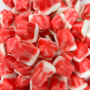 (Sirop de glucose, sucre, eau, gélatine, amidon modifié de pomme de terre, acidifiants : E330, E270, agent d’enrobage : huile végétale (palme), E901, E903, arômes, colorants : E129, E100, E133. Sans Gluten.