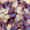 Sirop de glucose, sucre, eau, amidon modifié de pomme de terre, gelatine E330, E296, E270, arôme, colorants E102, E129, E133, huile végétale ( palme) agent démoulage ( cire de carnauba)